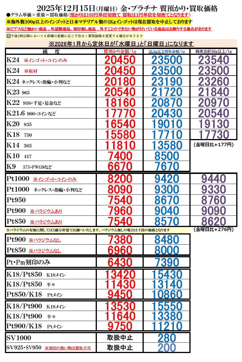 2025年12月15日(月曜日) 午前10時から午後7時まで営業いたします