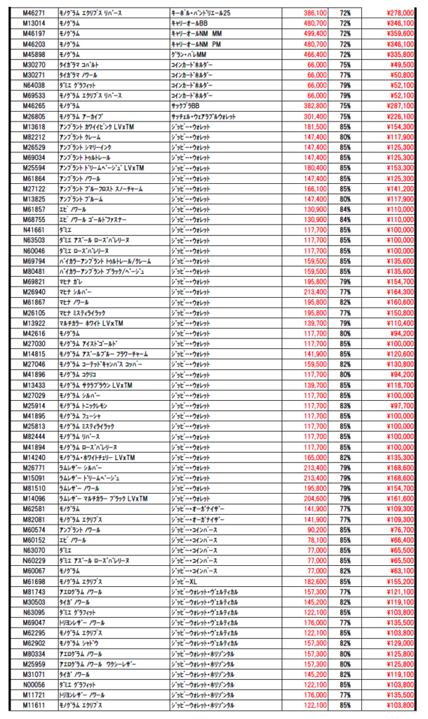 2025年11月ルイヴィトン新品買取価格表|お知らせ|質屋・買取 群馬県太田市の質屋『質 林屋』