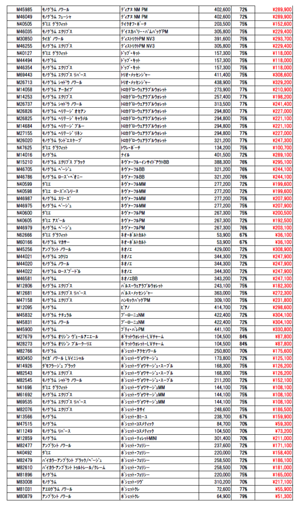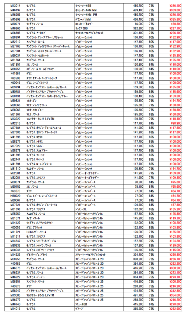 2026年4月ルイヴィトン新品買取価格表|お知らせ|質屋・買取 群馬県太田市の質屋『質 林屋』